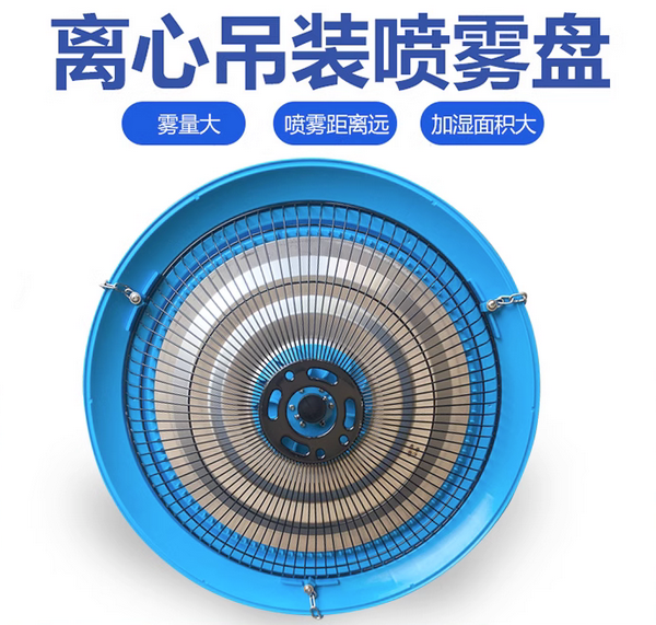 2、離心式吊裝噴霧盤(pán)具有降溫、加濕、除塵、冷卻、消毒、防疫、除靜電等作用;