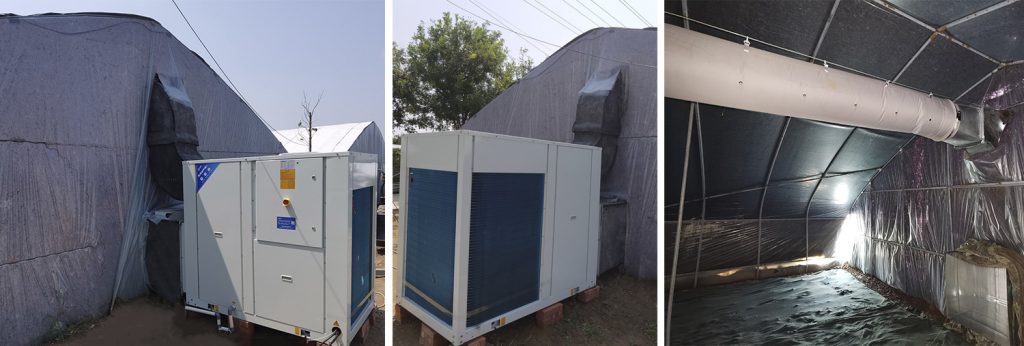 1、機(jī)組采用一體機(jī)結(jié)構(gòu),室內(nèi)機(jī)和室外機(jī)合為一體,機(jī)組可安裝在工作間或者室外均可,強(qiáng)電部分在菇房外,避免了因菇房電路老化或接觸不良而引起的火災(zāi)隱患;
